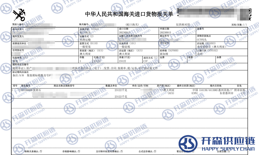一、澳大利亞蛋黃石寶石進(jìn)口報(bào)關(guān)代理案例詳情