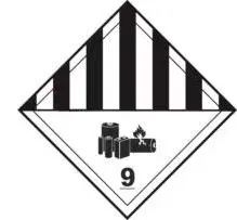 對瓦特小時的額定值不超過100Wh的移動電源(鋰離子電池組),如符合聯(lián)合國《關于危險貨物運輸?shù)慕ㄗh書 規(guī)章范本》(第20修訂版)第3.3章188特殊條款等相關規(guī)定可免除標簽的要求。對瓦特小時的額定值大于100Wh的移動電源(鋰離子電池組),其運輸包裝上應加貼下圖中9A號危險性運輸警示標簽。