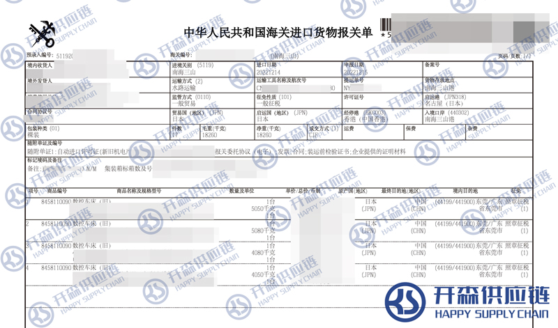 一、舊數(shù)控車床進口報關(guān)代理案例詳情
