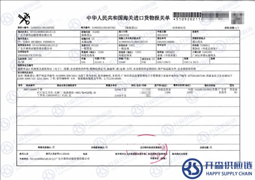 一、印度丁香進(jìn)口報關(guān)手續(xù)資料