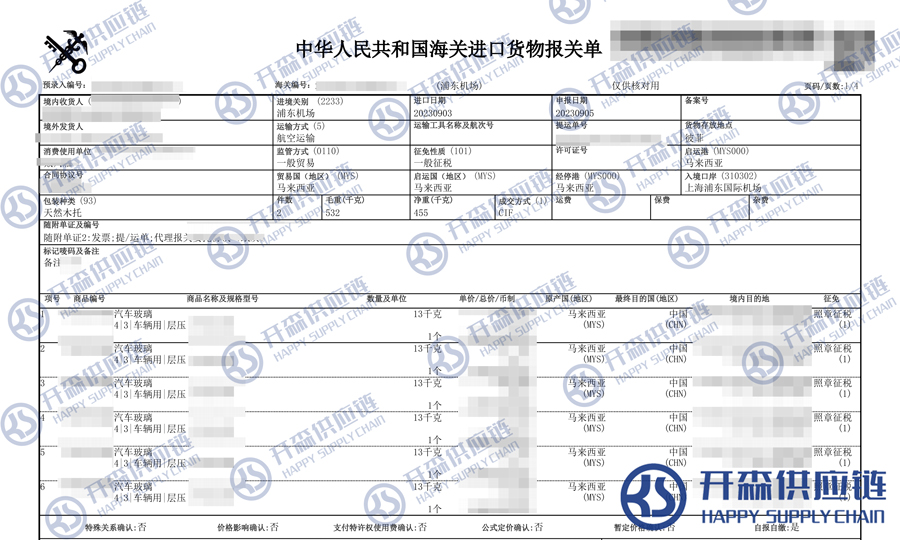 一、馬來(lái)西亞汽車玻璃進(jìn)口報(bào)關(guān)代理案例詳情