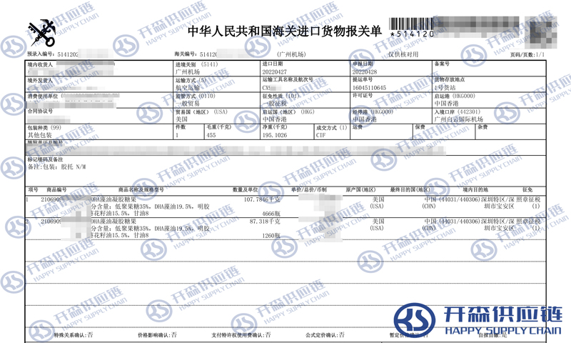 一、美國DHA藻油進口報關(guān)代理案例詳情