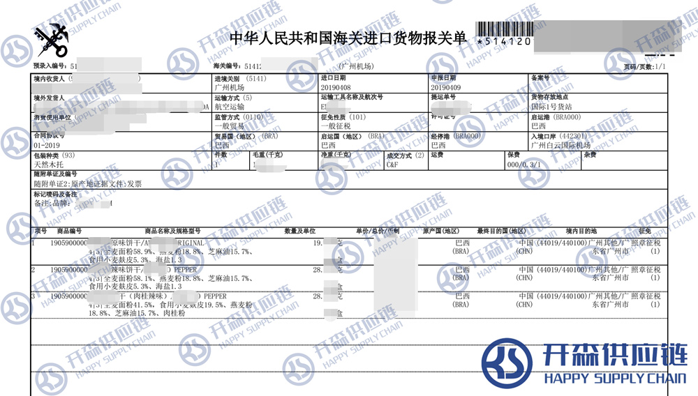 一、巴西餅干進(jìn)口報(bào)關(guān)代理案例詳情