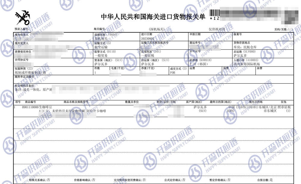 一、鄭州機(jī)場生咖啡豆進(jìn)口報(bào)關(guān)代理案例詳情