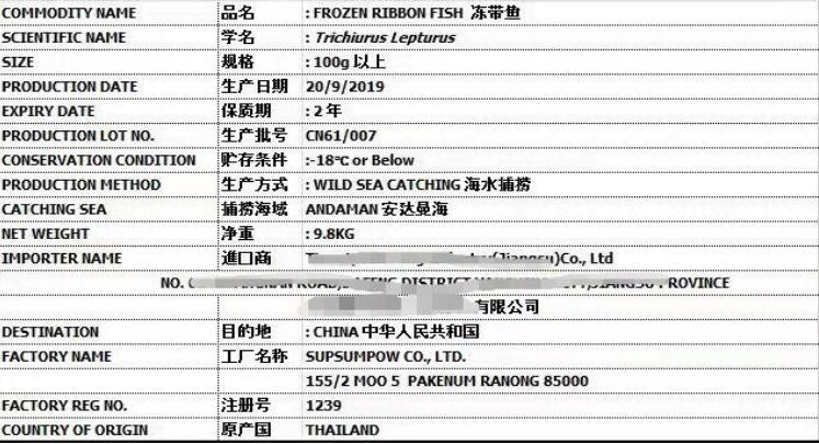 進口水產(chǎn)品標簽有清晰易辨的中英文字樣,標明以下內(nèi)容: