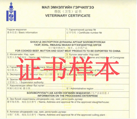 蒙古國官方已向中國海關總署備案確認蒙古國熟制牛羊肉產(chǎn)品獸醫(yī)衛(wèi)生證書樣式、官方印章及官方獸醫(yī)簽字等相關信息。進口蒙古國熟制牛羊肉產(chǎn)品應附有蒙古國官方出具的獸醫(yī)衛(wèi)生證書,并加蓋官方印章和官方獸醫(yī)簽字,同時向中國海關推送對應蒙古國輸華肉類衛(wèi)生證書電子信息。