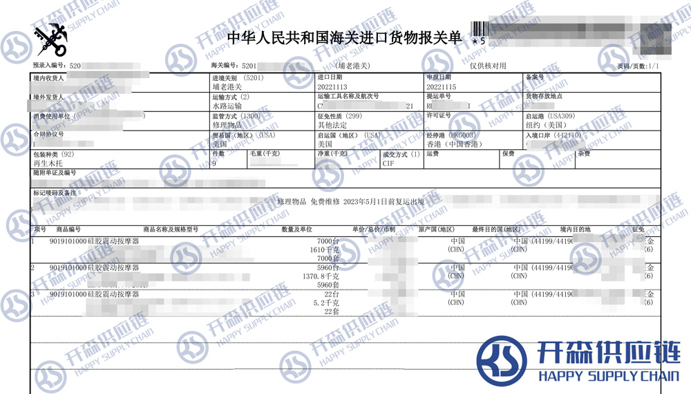 【本文結語】 上述就是震動按摩器退運(返修)進口報關清關代理服務【經典案例】的全部內容,希望能對您有所幫助,如有退運進口報關上任何疑問及問題可隨時在線聯(lián)系我們或撥打 18002611553,開森供應鏈擁有豐富的退運進口報關操作經驗及案例,10余年進口經驗為您所用,各類進口疑難都能為您一一解答及協(xié)助快速處理解決!