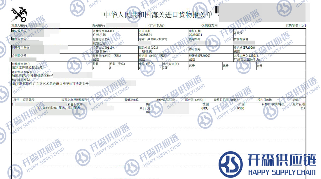 一、法國彩色石版畫進口報關(guān)代理案例詳情